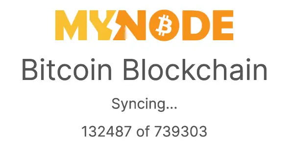 Next, the device will begin syncing the Bitcoin Blockchain! This process can take 6+ days, depending on your device and your network bandwidth. The myNode web interface will show you the current status of synchronization. Once the initial sync is completed, the device will automatically stay synchronized with the Bitcoin network and display the main application page.