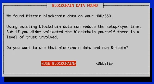 If there is already a blockchain on your hard drive/SSD you will be asked if you want to use this pre-synced/validated data or if its OK to delete it. If there is no blockchain data this question will be skipped.