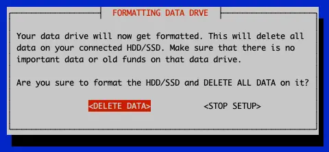 Finally, you have to agree that all (other) data on the hard drive/SSD will be deleted, except the blockchain if you selected that previously. This might take some seconds.
