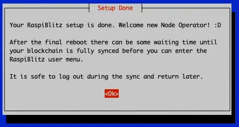 If you hit OK, the RaspiBlitz will go into a final reboot.