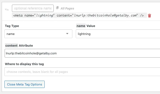 Once you install the plugin, you just need to configure each social media or website with your Lightning Address.