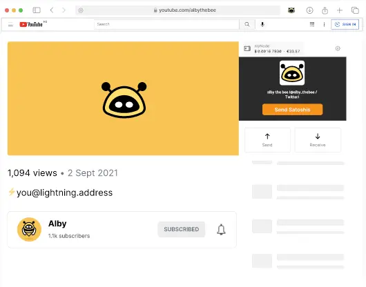 With the Alby Chrome/Firefox Extension, you can get direct contributions from your audience. Use a Lightning Address to receive value-for-value payments in Bitcoin from your audience.
